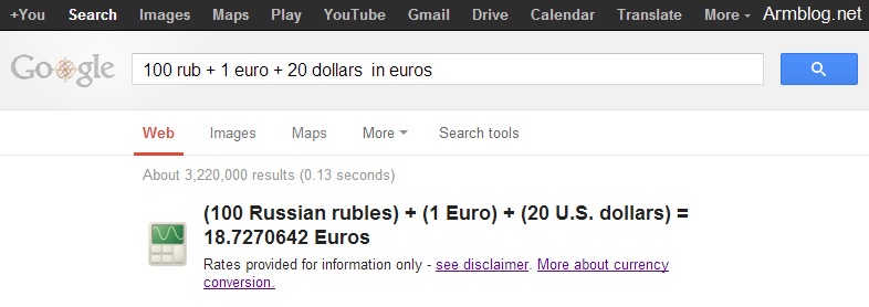 | Գլխավոր էջ » 2013 » Ապրիլ » 16 » Google-ն ունակ է հաշվել տարբեր չափման միավորներ ունեցող արժեքների գումարը